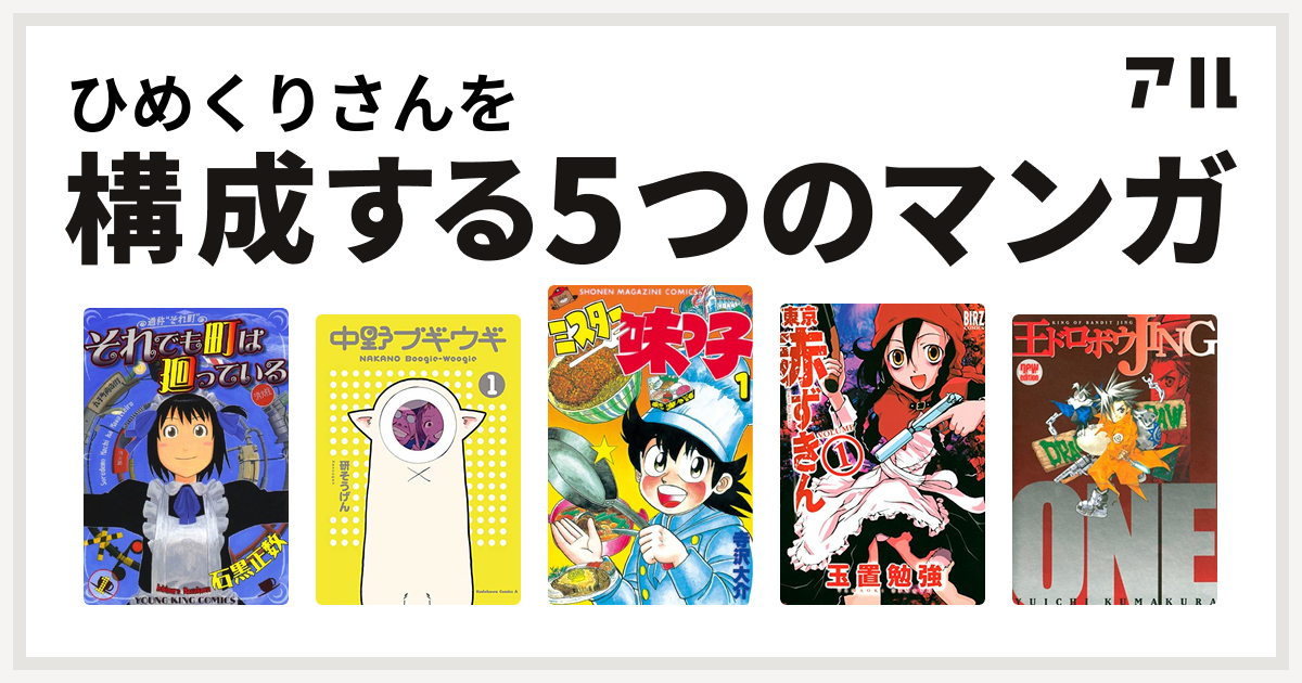 ひめくりさんを構成するマンガはそれでも町は廻っている 中野ブギウギ ミスター味っ子 東京赤ずきん 王ドロボウjing 私を構成する5つのマンガ アル